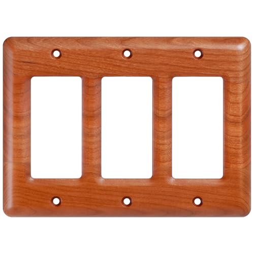 YDJSA Elegant Cherry Wood Triple Toggle Light Switch Cover Plate – Perfect Replacement for Triple Switch Plates, Stylish Design for Modern Interiors