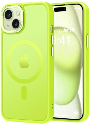 Thomo Upgraded Magnetic for iPhone 15 Plus Case [Compatible with Magsafe] [Mil-Grade Protection], Pocket-Friendly, Slim Translucent Phone Case Cover for iPhone 15 Plus 6.7", Fluorescent Green
