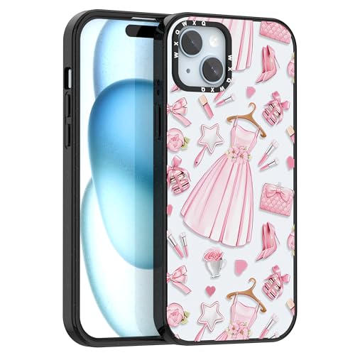 WXQWXQ for iPhone 15 Plus Case, TPU+PC Premium Painted Shockproof Phone Case, Superior Shock Absorption, Military-Grade Drop Protection, Dreamy Pink Princess Dress Design Phone Case