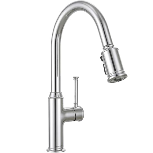 Lava Odoro Chrome Kitchen Faucet with Pull Down Sprayer, Single Hole Kitchen Sink Faucet, Single Handle Kitchen Faucet with 2-Function Sprayer, Deck Plate Included, 1.8 GPM, KF421-C