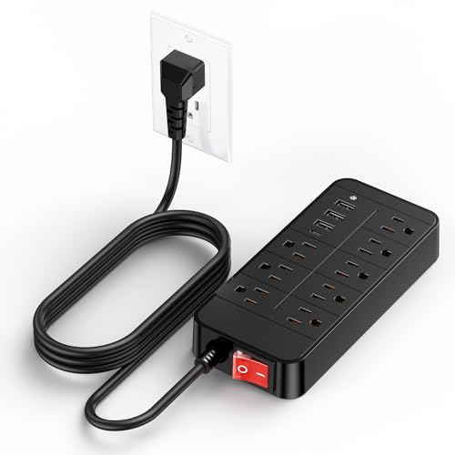 Otovoda Surge Protector Power Strip, 6 Ft Extension Cord with Multiple Outlets & 4 USB Ports (1 USB C PD20W), Multi Plug Extension Outlet Perfer for Home Office Workspace Bedroom, 3600 Joules, Black