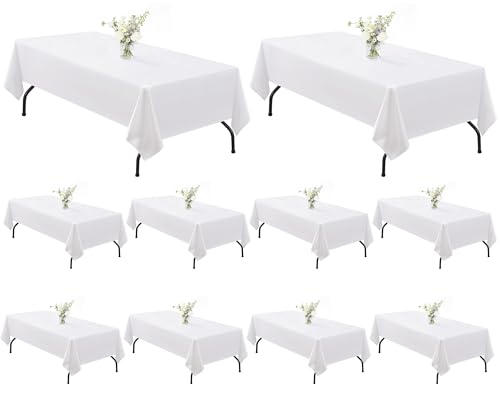 joybest 10 Pack Rectangle Tablecloths - 60 x 120 inch White Tablecloths for 8 Feet Table, Washable Polyester Fabric Table Covers for Wedding Party Banquet