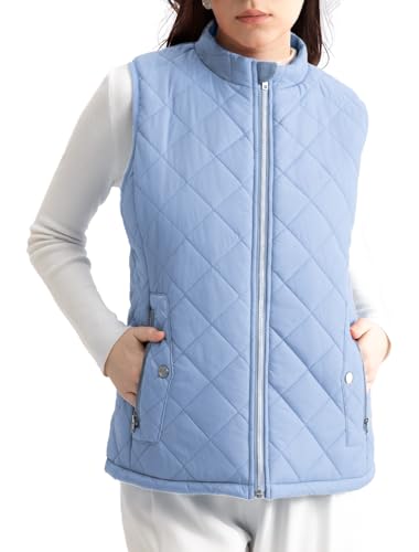 ROSE LETTER Women's Vest, Quilted Puffer Water-Resistant Zip With Pockets Light Blue Large
