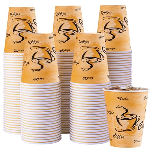 Lamosi 180 Pack 12 oz Coffee Cups, Paper Coffee Cups 12 oz, Disposable Leakproof Retro Cup for Cold Drinks or Hot Beverages