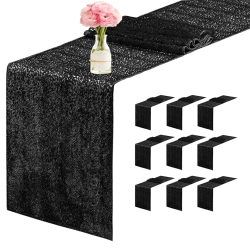 Yblut 10 Packs 12 x 72 inches Sequin Table Runner, Black Glitter Table Runner for Birthday Party Supplies Wedding Engagement Baby Shower Holiday Celebration Event Decorations