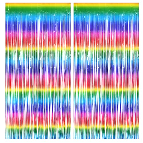 BRAVESHINE Tinsel Foil Curtains - 2 Pack Colorful Party Streamers Fringe Backdrop for Valentines/Easter/Doorway/80s/90s/Dance/Bachelorette/Engagement/Rainbows-theme/Candy/Birthdays Decorations