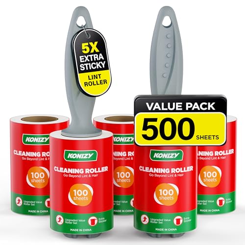 KONIZY Lint Rollers for Pet Hair Extra Sticky, 500 Sheets Mega Value Set Roller with 2 Upgraded Handles, 5 Portable Lint Roller for Clothes, Furniture, Carpet, Dog & Cat Hair Remover