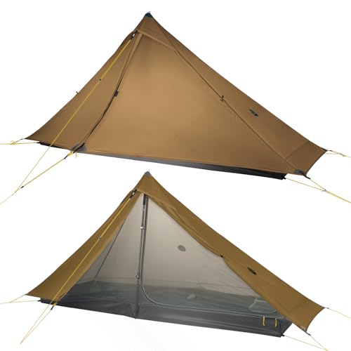LANSHAN 1 PRO Ultralight 1 Person Hiking Tent Lightweight Backpacking Camping Waterproof Trekking Pole Tents for Solo Hikers, Khaki