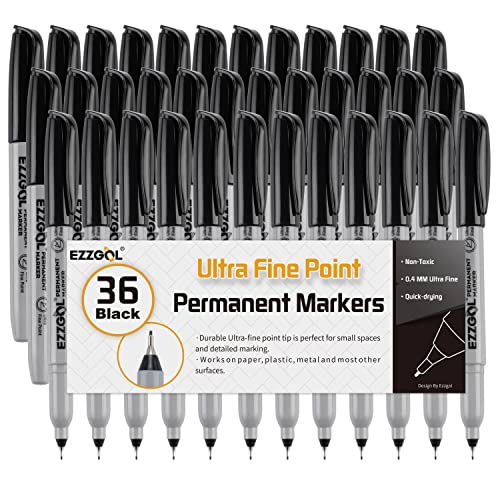 Ezzgol Ultra Fine Permanent Marker, 36 Pack Ultra Fine Point Black Permanent Marker set, Works on Plastic, Wood, Stone, Metal and Glass for Doodling, Marking