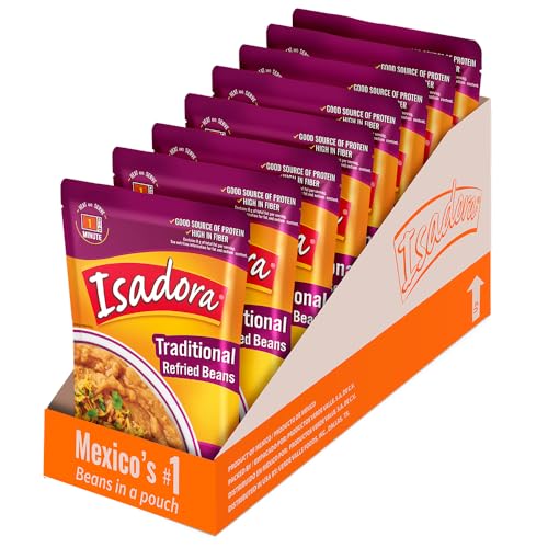 Isadora Traditional Refried Beans in Pouch (Pack of 8), Delicious Refried Beans, Microwave Food Premade Meals, Plant Based Protein,15.2 oz