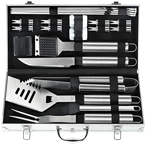 POLIGO 22PCS Heavy Duty BBQ Grill Accessories Set, Non-Slip Grill Tools for Outdoor Grill Set Thicker Stainless Steel Grill Utensils Set, Deluxe Grilling Tools Set in Aluminum Case Ideal Gifts for Men