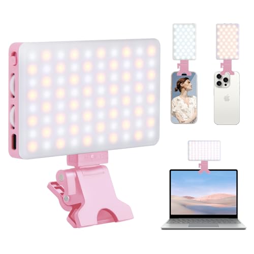 Inspack 80 LED Selfie Light for iPhone, Portable Phone Clip for Tiktok Video Recording, Zoom Calls Lighting Computer, High Power Rechargeable with 3 Light Modes, Laptop Conferencing, Pink