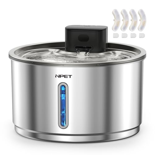 NPET Stainless Steel Cat Water Fountain, 1Gallon/135oz Automatic Pet Drinking Fountain Dog Water Dispenser with 8 Replacement Filters for Cats Indoor