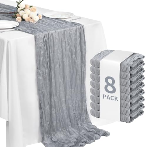 Fixwal 8 Pack Grey Cheesecloth Table Runners, 35x120 Inch Boho Gauze Table Runner, Semi-Transparent Table Decorations for Parties, Showers, Birthdays, Weddings