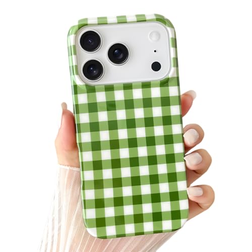 Skyseaco for iPhone 17 Pro Case Cute Aesthetic Gingham Phone Case Soft Slim TPU Shockproof Phone Cover for Women Girls 6.3 inch 2025 - Green