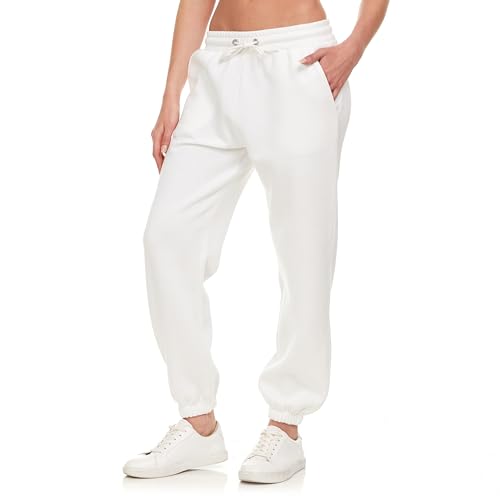 Sweatpants for Women - Closed Cinch Bottom Fleece Lounge Womens Plus Size Joggers White