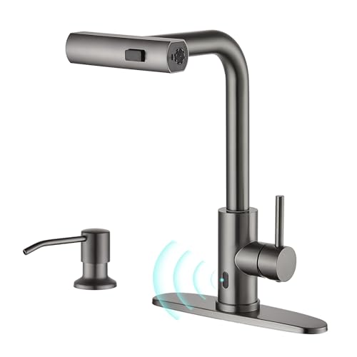 AVSIILE Touchless Kitchen Faucets with Pull Down Sprayer & Soap Dispenser, Waterfall Single Hole & Handle, Pull Out Sink Faucet in Gray, Suitable for Farmhouse Camper Laundry Rv Bar