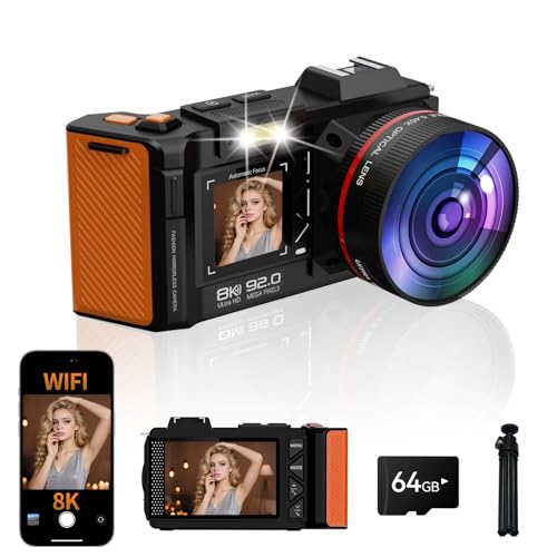 8K Digital Camera for Photography, 92MP WiFi Vlogging Camera for Front and Rear Screen, 18X Digital Zoom, Point and Shoot Camera for YouTube with 64GB SD Card (8K Black)
