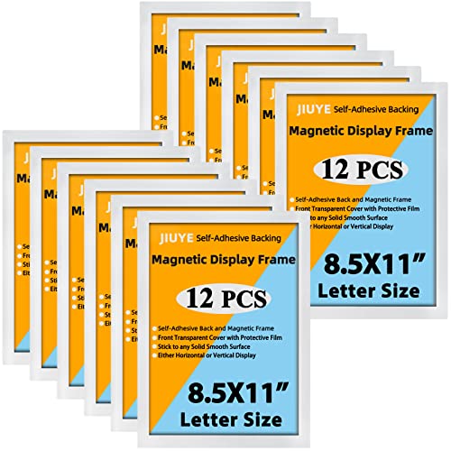 JIUYE 8.5x11 Magnetic Sign Holder,Self-Adhesive Magnetic Frames,Wall Mount Picture Display Frame with Magnet Strip Border for Window/Door/Fridge/Document Notice Paper(12Pcs,Silver)