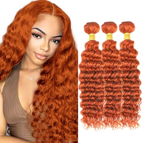 Color 350 Human Hair Bundles Ginger Deep Wave Bundle 18 20 22 inch AuokMar Mixed Length 3 Bundles Ginger Copper Hair Extensions 300g