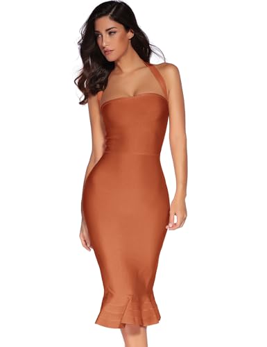 Womens Halter Fishtail Bandage Party Dress Elegant Wedding Guest Dress(sunsetorange,S)