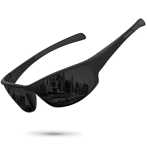 Ofwin Sports Polarized Sunglasses for Men Women Wrap Around Sun Glasses Fishing Cycling Driving Running UV Protection Black