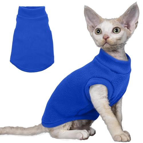 PUMYPOREITY Cat Sweater, Warm Kitten Clothes, Fleece Winter Coat for Hairless Cats, Soft Dog Fleece Vest, Cold Weather Pet Sweater for Dogs and Cats, Dark Blue, S