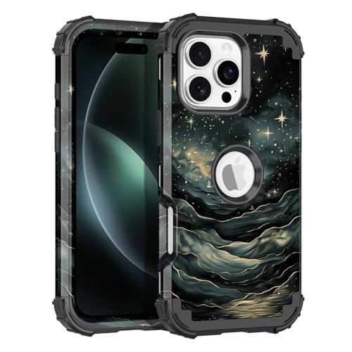 LONTECT for iPhone 16 Pro Case Glow in The Dark Three Layer Heavy Duty Shockproof Hard PC+Soft Silicone Rugged Full Body Protective Case for Women Girls,Dark Night