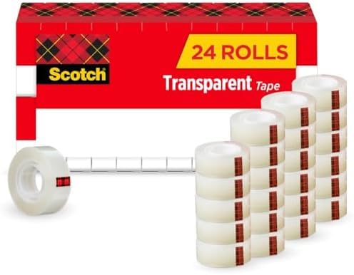 Scotch Transparent Tape Clear | 3/4 in x 1000 in | Photo-Safe | Strong Adhesion | 24 Rolls, Pack of 6