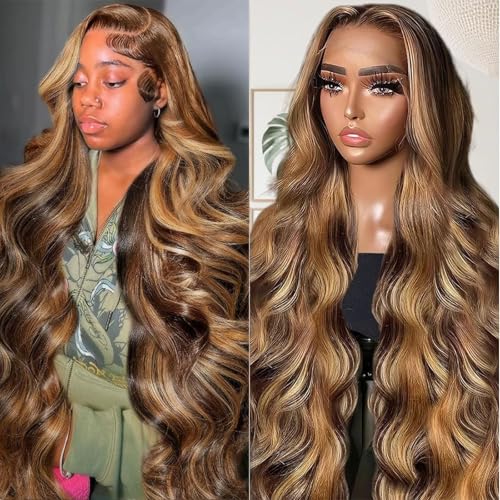 Shciyair 32 Inch Honey Blonde Ombre Lace Front Wig Human Hair 200 Density 13x4 Ombre HD Lace Front Wigs Human Hair Pre Plucked Color HD Lace Frontal Wig For Women