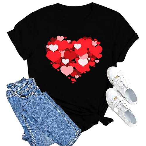MAIHUN Womens Valentines Day Shirts Cute Love Heart Tshirts Funny Teen Girls Valentines Short Sleeve