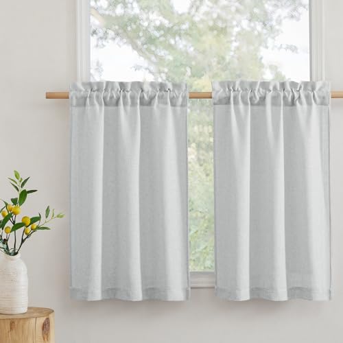 RYB HOME Kitchen Curtains, 30 inches Long Linen Rod Pocket Semi Sheer Cuartins for Basemnet Cafe, Light Filtering Bathroom Curtains Over Sink, W 26 x L 30, Dove Grey, 2 Panels Set