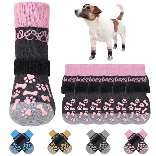 KOOLTAIL Anti Slip Dog Socks for Hot/Cold Pavement to Prevent Licking Paws, Dog Boots&Paw Protector with Grippers for Hardwood Floors,Traction Control No Twist Booties for Small Medium Large Dogs M