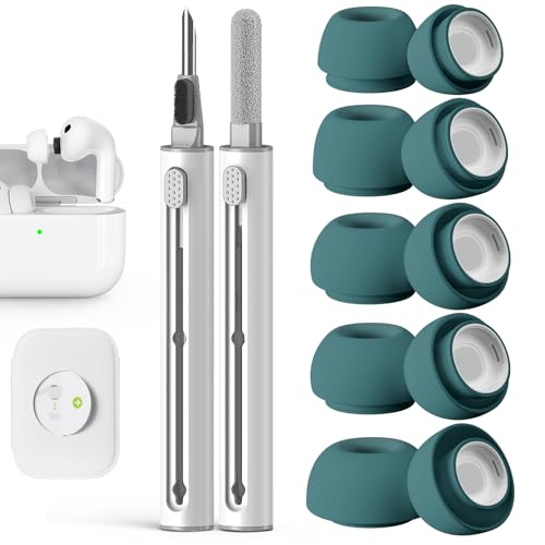 Pohgelan Compatible with AirPods Pro 3 Generation Replacement Ear Tips,with Noise Reduction Hole & Built-in dust Guard Screen, with Cleaner kit -5 Sizes (XXS/XS/S/M/L)-S-Green