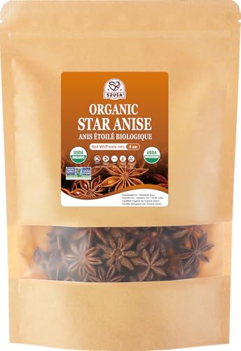 52USA Organic Star Anise, 4 Ounce (Pack of 1), NON-GMO Verified Chinese Star Anises Whole, Dried Star Anise Pods for Tea and baking