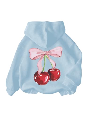 RoseSeek Girl's Bow Cheetah Leopard Hoodies Long Sleeve Pullover Tops Preppy Cute Sweatshirts Hoodies Pure Blue 10Y