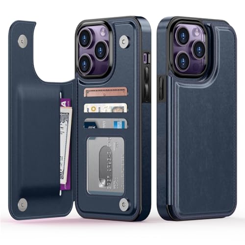 Goodon for iPhone 13 Pro Max Case Wallet - Flip Folio Leather Cover with Trendy Design, 4 Card Slots & Kickstand Function, Stylish Protective Phone Case for Women and Girls - Blue