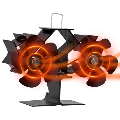 TCFUNDY Wood Stove Fan Heat Powered for Buddy Heater, Dual Motor Fireplace Fan with Bracket Fixed on Propane Space Heater, Quiet Operation Circulating Warm Air, Stove Fan for Wood/Log Burner Stove
