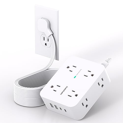 Extension Cord 15 Ft, Power Strip with 4 USB Ports(2 USB C), HANYCONY 8 Surge Protector Outlets with Flat Plug, Wall Mount, Desk for Home Office College Dorm Room Essentials
