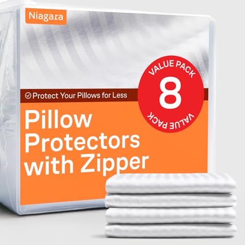 Ultra Soft Pillow Protectors with Zipper Standard Size - Set of 8 Breathable Pillow Covers - 100% Protection Against Stains, Dust & Dirt - Machine Washable (Dark White)