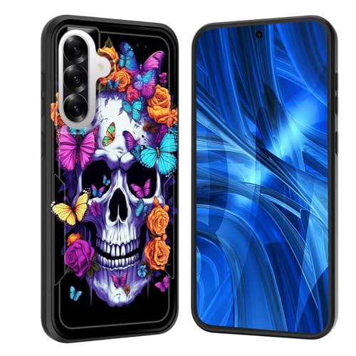 JHYYTUJTYP for Galaxy A36 5G Case,[Military Grade Drop Tested] Heavy-Duty Tough Rugged Shockproof Protective Case for Samsung Galaxy A36 5G 6.7 inch 2025,Floral Butterfly Skull