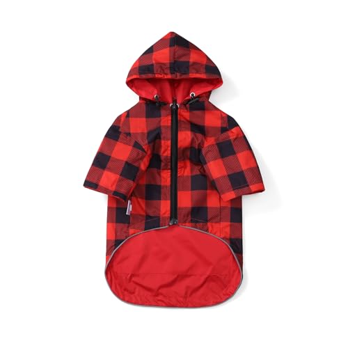 Dog Raincoat Dogs Waterproof Reversible rain Jacket Dog Small Medium Breeds Reflective Zipper Storage Pocket Harness Hole - Red - XL