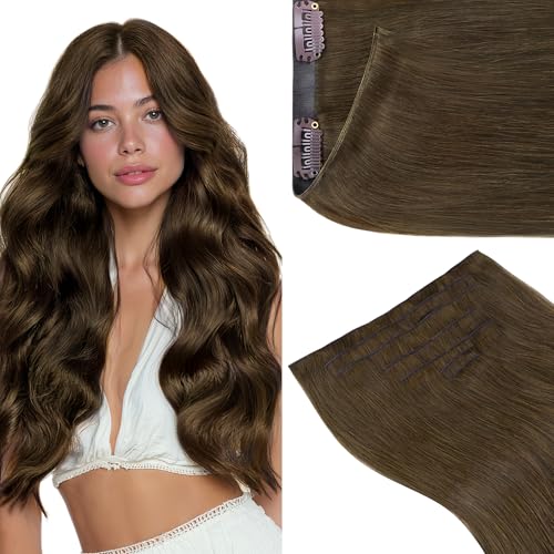 GOO GOO Genius Clip in Hair Extensions, 18inch 140g 7pcs, Seamless PU Clip in Hair Extensions, Straight Virgin Real Human Hair, 4A Chocolate Brown