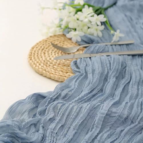 WSSJHYY 2 Pack Cheesecloth Table Runner, 10FT Dusty Blue