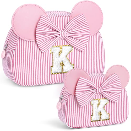 QLOVEA Gifts for Girls, Personalized Initial Makeup Bag Birthday Gift for 4 5 6 7 8 9 10 11 12 13 Years Old Girl Kids Pink Initial Cosmetic Travel Toiletry Bag for Girls Sister Daughter Pink K