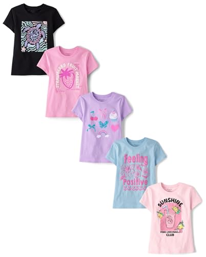 The Children's Place,Girls,Trends,Icons Short Sleeve Graphic T-Shirts,5 Pack,Sun/Strawberry/Positive/Icons/Turtle,Small