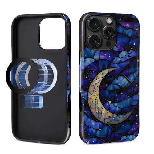 MQJCYB Magnetic Case for iPhone 16 Pro Max Design,Compatible with MagSafe,Slim Protective Soft TPU Bumper Phone Cover Women Girls Case for iPhone 16 Pro Max-Celestial Stained Glass Moon Stars