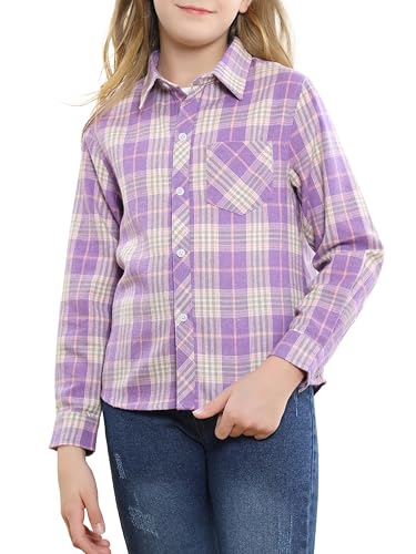 SANGTREE Family Matching Flannels Girls Flannel Shirts Long Sleeve Button Down Plaid Shirts Purple, 4-5T = Tag 120