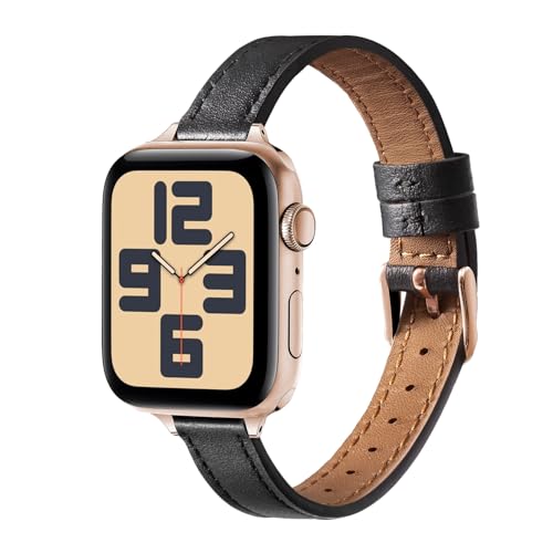 SRDZ Slim Apple Watch Womens Black Bands Metal Compatible with Apple Watch Straps 38mm 40mm 41mm 42mm, Solace Rose Gold Leather Thin Cute Wristbands for iWatch Ultra SE Series 11 10 9 8 7 6 5 4 3 2 1