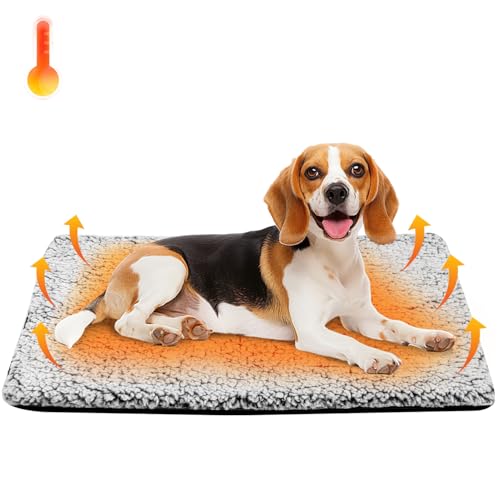 WONONE Self Warming Pet Pad, Super Soft Thermal Dog Crate Bed Pad for Crate, Sofa, Floor Washable Anti-Slip Self Warming Kennel Mat for Indoor Outdoor Dogs and Cats (LightGray, M)